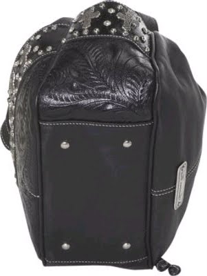 en cuir noir avec des taches minuit argent, bling cristal et défile croix sur le devant et les côtés
